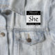 Make your preferred third-person personal pronoun easy to spot with this handy button.