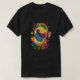 I give wanted to give this a 4 instead of a 5 because these Basic DARK T0shirts run unexpectedly SLIM or Narrow. Which is great if you do not have a potbelly, but I have a paunch. It isn't the shirt's fault that I've got a beer belly. The design and shirt itself is a quality cotton shirt. The color is more of a deep purple, but still a very pretty color. The Basic DARK T-shirts run a bit SLIMMER than the Basic Ts. The neck is a fraction narrower (or seems to be narrower) also. I'm a paunchy middle-aged woman and my neck is 12 inches (31cm) thick and the neckline fell about the same as in the photo of the man, and I had the desire to tug it a bit. So if you're a thick necked man or like loose shirts, be aware these are slimmer shirts. Once I get rid of my lockdown paunch it'll look great. The shirt washed well in cold water with no apparent bleeding. We don't have a dryer, so it hung dry. Did not shrink. Love the colors and the design. The design looks smaller on my shirt than it does on the model on-line. But still, it looks good on the shirt. The printing looks as it does on the model, just the size seems fractionally smaller. Washed garment in cold water, hung dry and design appeared unaffected.