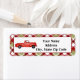 This label has a red, olive green and white plaid background with the image of a vintage red pick up truck.