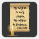 My religion is very simple square sticker
