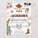 Saddle up! Ready for a cowboy rodeo birthday party? This design features cowboy-themed items such as a cowboy hat, horseshoe, cacti, skull, and a cowhide or cow print pattern. All text is editable on this neutral-toned cowboy-themed birthday invite! The design is gender-neutral and suitable for boys or girls and is fully customisable for a 1st birthday, 2nd birthday, or older kids. Find matching items in my shop.