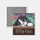 Cat fridge magnets make great gifts for cat enthusiasts. This magnet features a black and white cat hiding in the clothes drawer! Created from an original painting © 2009 Lisa Marie Robinson