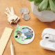 Cute Sheltie keychain has a cartoon drawing of the merle canine jumping over an agility obstacle and out of its scenic circle background. To the right reads, "My Sheltie Loves Agility" with a red heart. Colourful Shetland Sheepdog gift is perfect for dog agility fans. We have this drawing in sable too!