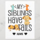 My Siblings Have Tails design with personalised name. Want this design on a different product? Click on "VIEW ALL PRODUCTS" on the upper left of this description and choose the item that you want. You can then adjust the size of this design to fit to the product you've selected. You can also change the colour for the name option. We have thousands of designs to choose from in our store for the entire family!