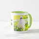 Silkie chickens - the cuddly teddy bears of the poultry world! If you have ever owned a Silkie you'll know how delightful they are - cute, friendly and very, very photogenic. Here we have a watercolour painting of a white Silkie wandering through a field of greenery and bluebells. The text - "My Silkies - My World!" is an expression of how Silkie owners see their feathered friends. If you know a Silkie owner, or if you're one yourself, you've just found the perfect gift. Want different text? No problem - you can personalise this mug with your very own words. Just click on the 'customise it' button under the picture and change the text to your own personal message. Birthdays, Christmas, Easter - what could be a more fitting thing to give the Silkie lover in your life?