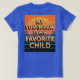 This is a Retro Sunset Image My Son-In-Law Is My Favourite Child t-shirt. The background is a sunset sky with stripes that are orange, pink and blue. The words are in beige and orange text. The image is on the front and back of the t-shirt. The t-shirt is made of 100% cotton. The t-shirt is a blue women's short sleeve t-shirt.