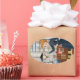 Wish it had some lettering on it, but such a cute design. No lettering. Another one of the few that come in oval without sacrificing graphics.