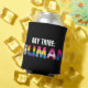 Can cooler with an all inclusive message, features "my tribe" in white font and "human" in LGBTQ colours.