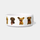 This is a heavy, durable bowl decorated with Tibbies of many colors, the perfect size for hungry/thirsty Tibs. The design is interesting and printing clear.