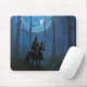 Mysterious Black Knight in the Moonlit Forest Mouse Mat