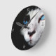 Mysterious Blue Eyed Tuxedo Cat Clock