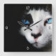 Mysterious Blue Eyed Tuxedo Cat Clock