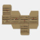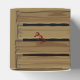 A favour box that looks like a wooden crate with eyes peeking out of a crack in the front. It has customisable text on the top and on the back. Cute for small gifts or treats.