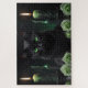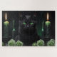 Mysterious Scary Black Cat with Green Eyes Jigsaw Puzzle
