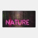 Digital composition of my own photograph with an added neon sign nature in magenta colour with glow and lighting all around the forest.
