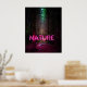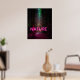 Digital composition of my own photograph with an added neon sign nature in magenta color with glow and lighting all around the forest.