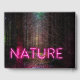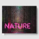 Digital composition of my own photograph with an added neon sign nature in magenta colour with glow and lighting all around the forest.