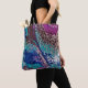 What a super tote bag in turquoise, blue, fushia, deep burgundy and white jewel tones. This is taken from a painting by the same name by Joy Lomenick.