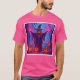 I give wanted to give this a 4 instead of a 5 because these Basic DARK T0shirts run unexpectedly SLIM or Narrow. Which is great if you do not have a potbelly, but I have a paunch. It isn't the shirt's fault that I've got a beer belly. The design and shirt itself is a quality cotton shirt. The color is more of a deep purple, but still a very pretty color. The Basic DARK T-shirts run a bit SLIMMER than the Basic Ts. The neck is a fraction narrower (or seems to be narrower) also. I'm a paunchy middle-aged woman and my neck is 12 inches (31cm) thick and the neckline fell about the same as in the photo of the man, and I had the desire to tug it a bit. So if you're a thick necked man or like loose shirts, be aware these are slimmer shirts. Once I get rid of my lockdown paunch it'll look great. The shirt washed well in cold water with no apparent bleeding. We don't have a dryer, so it hung dry. Did not shrink. Love the colors and the design. The design looks smaller on my shirt than it does on the model on-line. But still, it looks good on the shirt. The printing looks as it does on the model, just the size seems fractionally smaller. Washed garment in cold water, hung dry and design appeared unaffected.