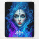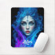 Add a supernatural touch to your workspace with this mousepad, which features an otherworldly female with ice blue eyes and delicate floral tattoos on her face, artistically emerging from blue and purple flames. Personalise with a name!