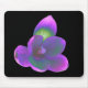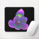 This weird and wonderful floral mousepad features a photo of a crocus flower that has been digitally altered by adding a filter to create shades of pink, green, blue and purple. The flower is on a black background.