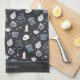 Get ready for Halloween with this spooky chic kitchen towel featuring a pattern of snakes, mystical crystals, spellbooks, candles, jars, skulls, tarot cards, and potions on a charcoal background. Personalise with a name or monogram along the bottom.