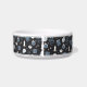 Get your pets ready for Halloween with this spooky personalised bowl featuring a pattern of snakes, mystical crystals, potions, spellbooks, candles, jars, skulls, tarot cards, and potions on a charcoal background. Personalise with your pet's name.