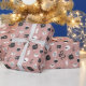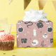 Spooky chic wrapping paper features a pattern of snakes, mystical crystals, potions, spellbooks, candles, jars, skulls, tarot cards, and potions on a dusty blush rose pink background.