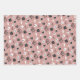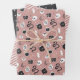 Spooky chic wrapping paper features a pattern of snakes, mystical crystals, potions, spellbooks, candles, jars, skulls, tarot cards, and potions on a dusty rose blush pink background, with two additional colour-coordinated patterns.