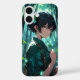 High-quality anime phone case depicting a mystical forest guardian with glowing staff surrounded by magical creatures and fireflies. Perfect for fantasy anime fans and lovers of magical landscapes.