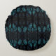 Mystic Forest Mosaic Blue & Black pattern Round Cushion