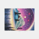 A beautiful Sherpa blanket displays a magical cabin under a snowy, purple sky.