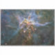 In the heart of the Carina Nebula, a tempestuous stellar nursery 7,500 light-years away, lies a cosmic battlefield known as Mystic Mountain. This colossal pillar of gas and dust, stretching three light-years high, appears to be locked in an eternal struggle. On one side, relentless winds and scorching radiation from neighboring, monstrously hot stars relentlessly erode the mountain's form. Imagine cosmic sandblasting on a scale so immense it could reshape mountains! But Mystic Mountain holds a secret weapon. Deep within its swirling folds, invisible to our eyes, lie embryonic stars, stellar infants just beginning their fiery journey. These hidden newborns, fueled by the very dust they're embedded in, fire off powerful jets of gas that streak outwards like celestial exhaust. These jets, a testament to the raw power of stellar birth, carve and sculpt the mountain from within, adding another layer to this dramatic cosmic dance. The Hubble Space Telescope, our keen astronomical eye, captures this breathtaking scene, a constant reminder of the fierce beauty and relentless activity that forge new stars in the vast expanse of the universe. - This file is in the public domain in the United States because it was solely created by NASA.