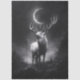 A hauntingly elegant black-and-white illustration of a majestic stag standing beneath a glowing crescent moon in a foggy forest. The intricate antlers mirror the moon’s arc, giving this artwork a surreal, mystical quality. Perfect for gothic decoupage projects, dark fantasy themes, or nature-inspired crafts with a moody twist.