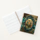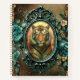 This notebook features a beautiful Tiger in a green ornate frame, surrounded by emerald roses and yellow flowers with a vintage background. If you love the mystic beauty of wild animals within a vintage design, then this notebook is for you!