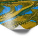 Mystic Waters: An eye appears in the midst of a gold and blue swirling sea, with a subtle reflection of a face in the water. This surreal image conveys the idea of exploring the depths of our psyche and the duality of perception and reality, where dreams and consciousness intertwine.