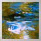 Mystic Waters: An eye appears in the midst of a gold and blue swirling sea, with a subtle reflection of a face in the water. This surreal image conveys the idea of exploring the depths of our psyche and the duality of perception and reality, where dreams and consciousness intertwine.