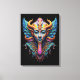 Make a bold statement with this stunning psychedelic deity mask design. Featuring sweeping golden horns, great feathered wings, and an ornately decorated face in rich teal, cobalt, violet and gold, this eye-catching print is packed with intricate detail that rewards a closer look every time.