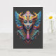 Make a bold statement with this stunning psychedelic deity mask design. Featuring sweeping golden horns, great feathered wings, and an ornately decorated face in rich teal, cobalt, violet and gold, this eye-catching print is packed with intricate detail that rewards a closer look every time.