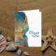 Gorgeous abstract teal and coral with rich gold marbling on left side. Templates created on the inside on white background. Photo template on the back. Background and font colours can be changed with the customise link.