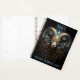 Astrology-inspired Aries planner cover featuring a stylized ram and swirling decorative flourishes. Includes editable text fields for name and year customization.