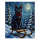Mystical Black Cat Enchanted Winter Sled Christmas Poster