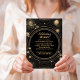 Featuring a striking black backdrop adorned with shimmering gold stars and cosmic patterns, this invitation evokes the magic of a starlit night. The elegant gold foil accents highlight the intricate celestial elements, adding a touch of opulence and sophistication to your special occasion.