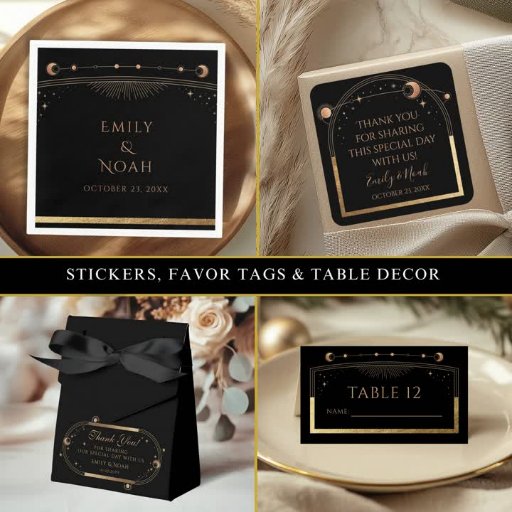 Celestial Black Gold Sun Moon Stars WeddingDesigned by Shirley Evans