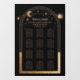 Mystical Black Gold Sun Moon Stars Astronomy Wedding Seating Chart Window Cling features gold sun, moon and stars with a golden frame on a black background. Inside the frame is the text "Welcome" in elegant gold calligraphy script and your custom wedding reception seating chart information. Personalise by editing the text in the text boxes provided. Designed for you by ©Evco Studio www.zazzle.com/store/evcostudio