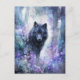 Mystical Black Wolf in Purple Watercolor Forest Postcard