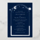 Mystical Blue Silver Sun Star Moon Astronomy Space Foil Wedding Invitations features sun, moon and stars with a silver foil frame on a blue background. Inside is your custom wedding invitation information. Personalise by editing the text in the text boxes. Designed for you by ©Evco Studio www.zazzle.com/store/evcostudio