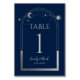 Mystical Blue Silver Sun Moon Astronomy Wedding Table Number