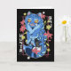 Mystical Blue Tiger Japanese Folk Art Style Card