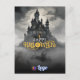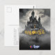 Capture the spirit of Halloween with this mystical castle postcard. Featuring a towering gothic castle surrounded by mist under a moonlit sky, the grayscale background contrasts with bold golden lettering for a hauntingly elegant effect.